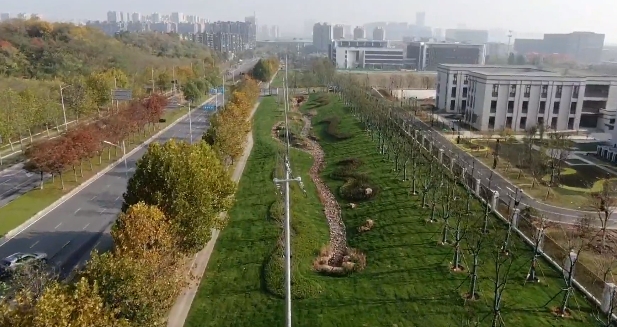 法治園區(qū)配套道路及環(huán)境提升工程位于南京市江北新區(qū)沿山大道以東,浦鎮(zhèn)大街以南。項目建設中,同力建設認真落實海綿城市建設理念,在完善片區(qū)路網的同時,布局下凹綠地、透水鋪裝、植草溝、溢流式雨水口、滲透管等海綿設施,通過觀賞花草種植、天然石鋪地、植物組團點綴等形式打造特色旱溪景觀,實現(xiàn)生態(tài)功能與景觀效果的統(tǒng)一。兩岸生態(tài)打造不僅滿足了旱溪渠道功能和堤防穩(wěn)定要求,還有效發(fā)揮了吸附截污作用,讓江北新區(qū)環(huán)境更加潔凈舒適。
