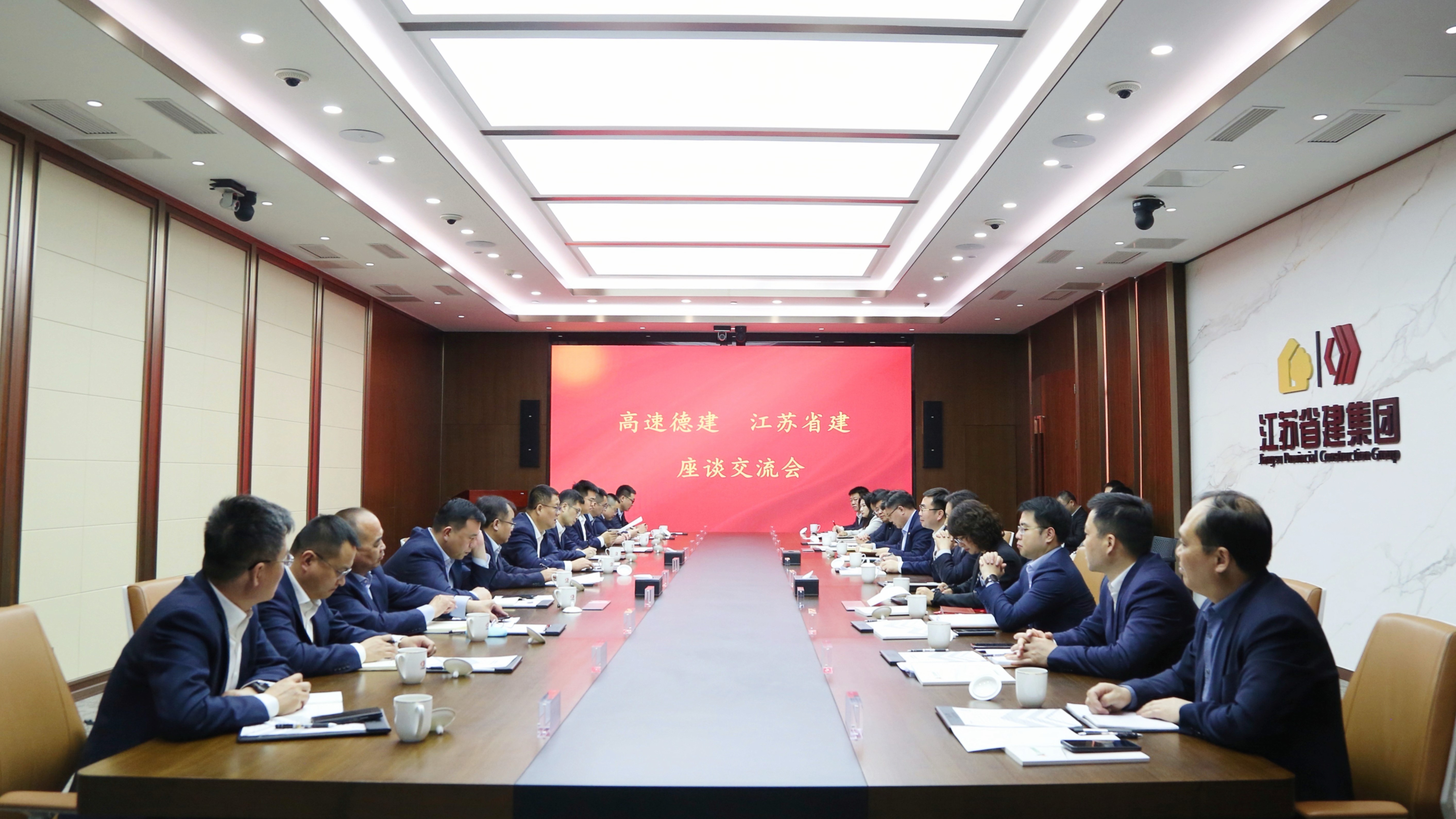 蔣寧對趙建強(qiáng)一行的到訪表示誠摯歡迎,并介紹了集團(tuán)發(fā)展概況、業(yè)務(wù)結(jié)構(gòu)、市場布局、核心競爭優(yōu)勢等情況。他表示,高速德建作為山東省建筑業(yè)全鏈條龍頭骨干企業(yè),置身行業(yè)轉(zhuǎn)型升級和深度變革調(diào)整中,持續(xù)釋放混改紅利,保持了穩(wěn)中有進(jìn)、進(jìn)中提質(zhì)的發(fā)展勢頭。近年來,江蘇省建圍繞重點(diǎn)工作攻堅(jiān),苦練內(nèi)功,強(qiáng)化管理,深化結(jié)構(gòu)調(diào)整,全力穩(wěn)經(jīng)營、促轉(zhuǎn)型、防風(fēng)險(xiǎn)。下一步,圍繞資源共享、平臺共建、發(fā)展共贏,希望雙方充分發(fā)揮互補(bǔ)優(yōu)勢,加強(qiáng)交流互鑒,在國內(nèi)外業(yè)務(wù)拓展、區(qū)域市場協(xié)同發(fā)展、項(xiàng)目管理對標(biāo)等方面深化合作,提升合作水平,擴(kuò)大合作成效,實(shí)現(xiàn)共贏發(fā)展。